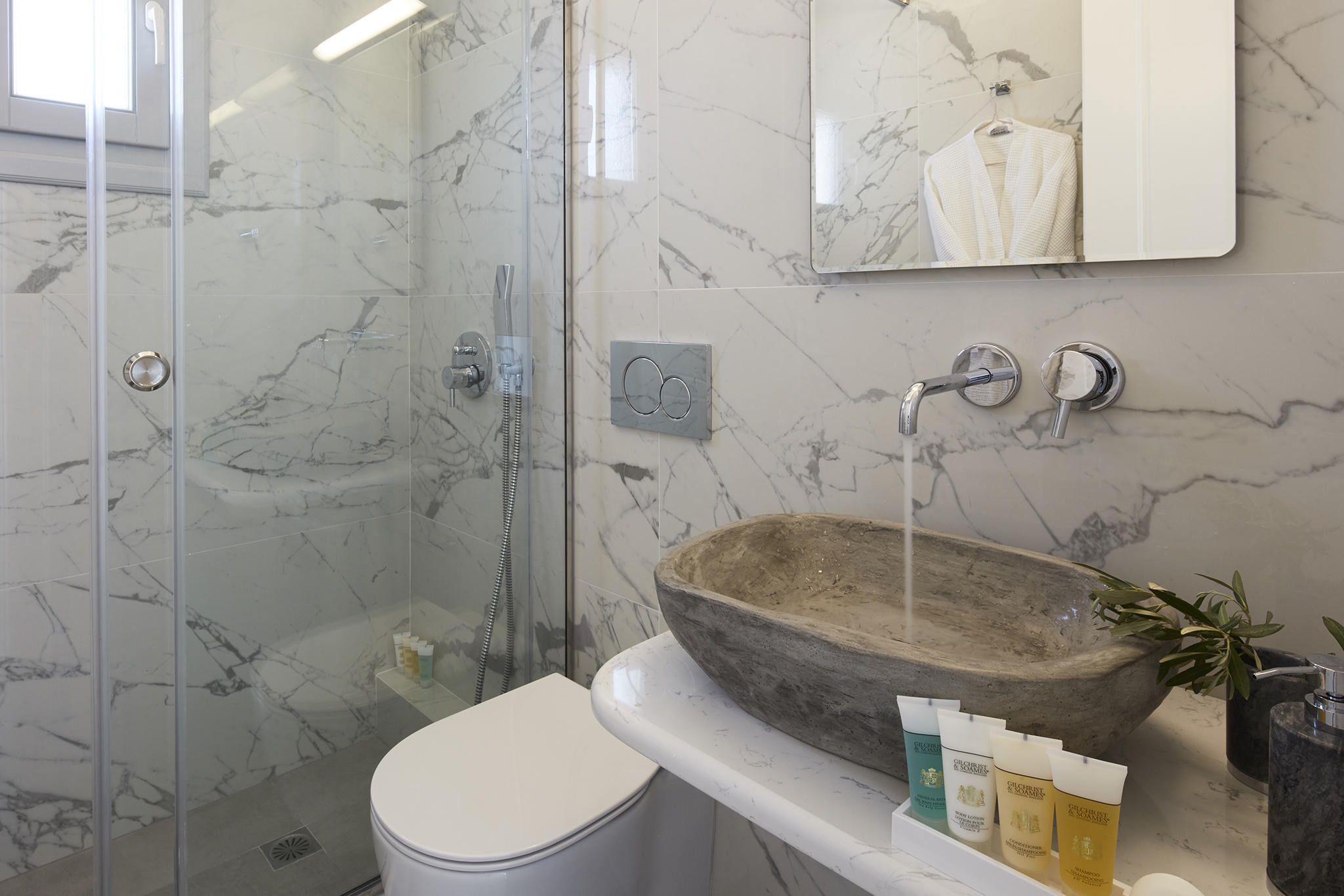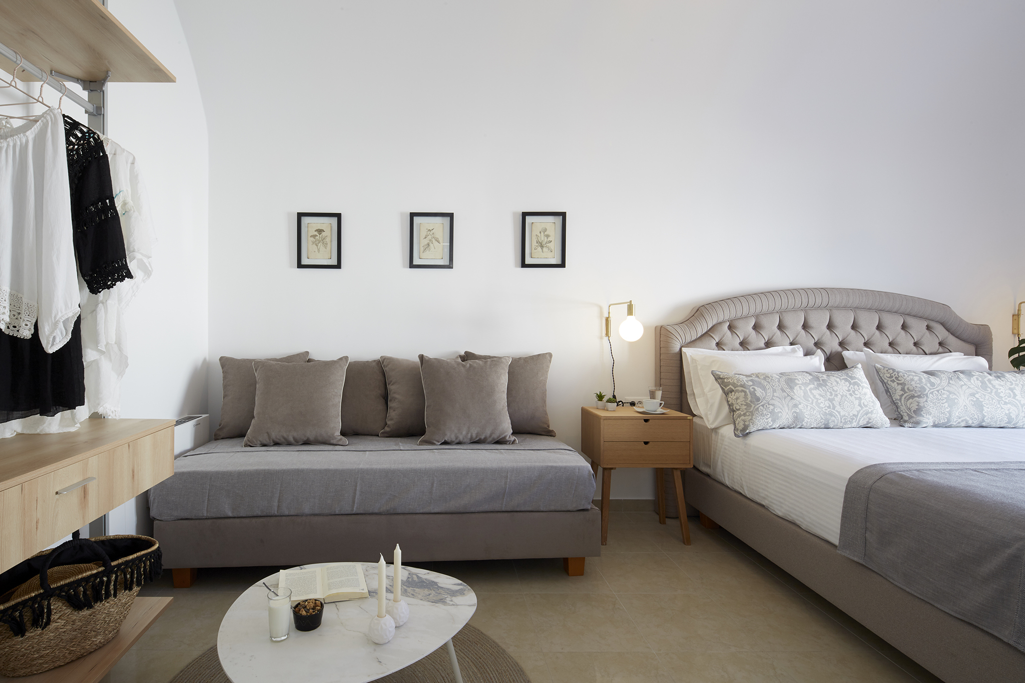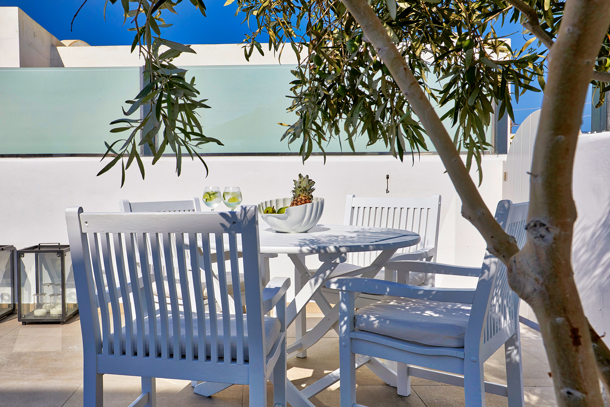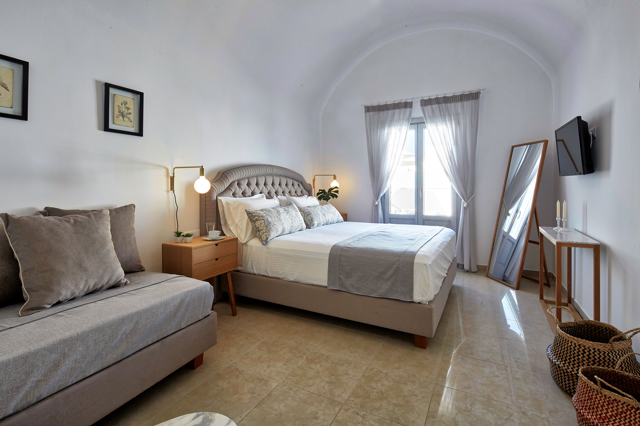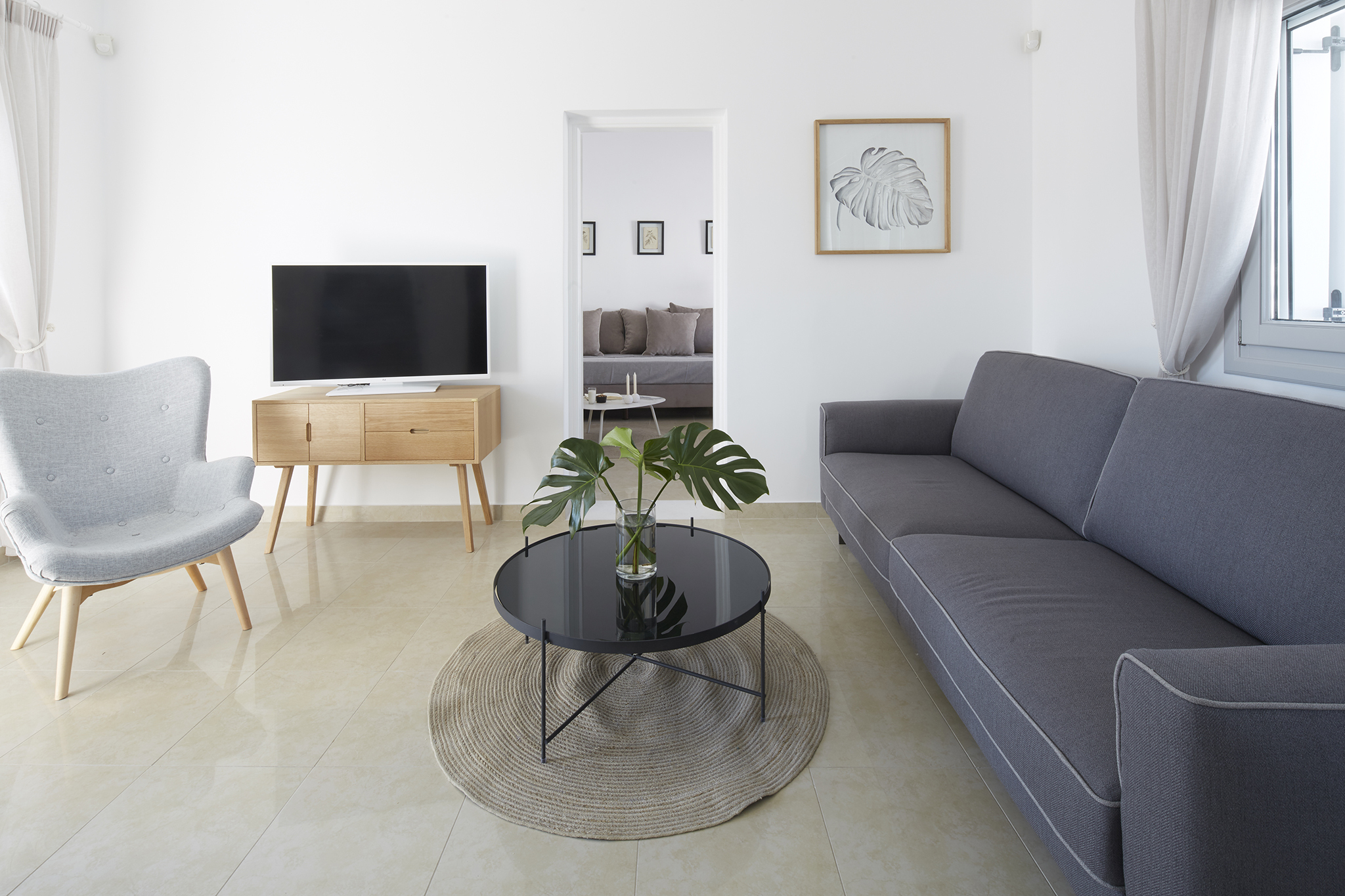 - Refined interiors with minimalist Cycladic design